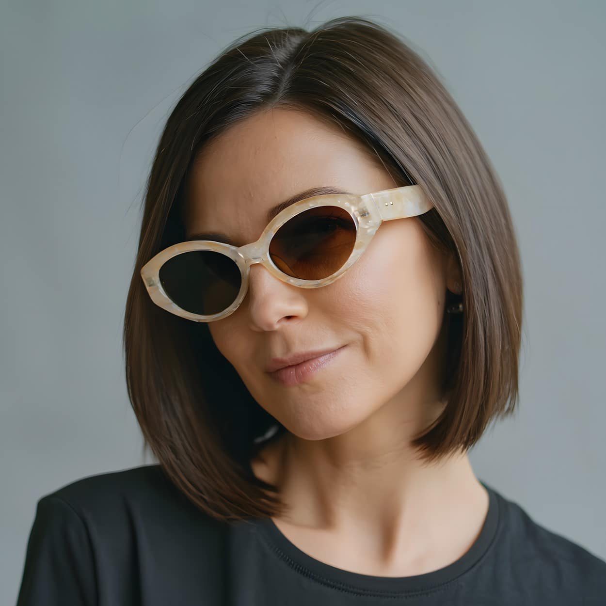 Cute oval frame in an amber tortoiseshell with graduated smoke lenses for a refined, vintage inspired look. Full UV400 protection with category 3 lenses, suitable for bright sunny conditions. Part of our sustainable range, these sunglasses are crafted from recycled RPCTG material, transforming plastic waste into lightweight, strong and durable frames. Supplied with a recycled fabric slip in case for safekeeping.