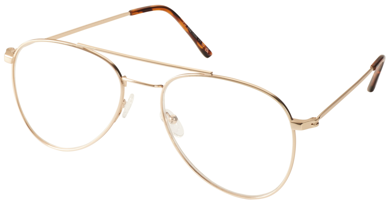 Classic recycled metal aviator style frame in a matt gold finish with tortoise ear tips. Adjustable nose pads for added comfort. Quality reading lenses.