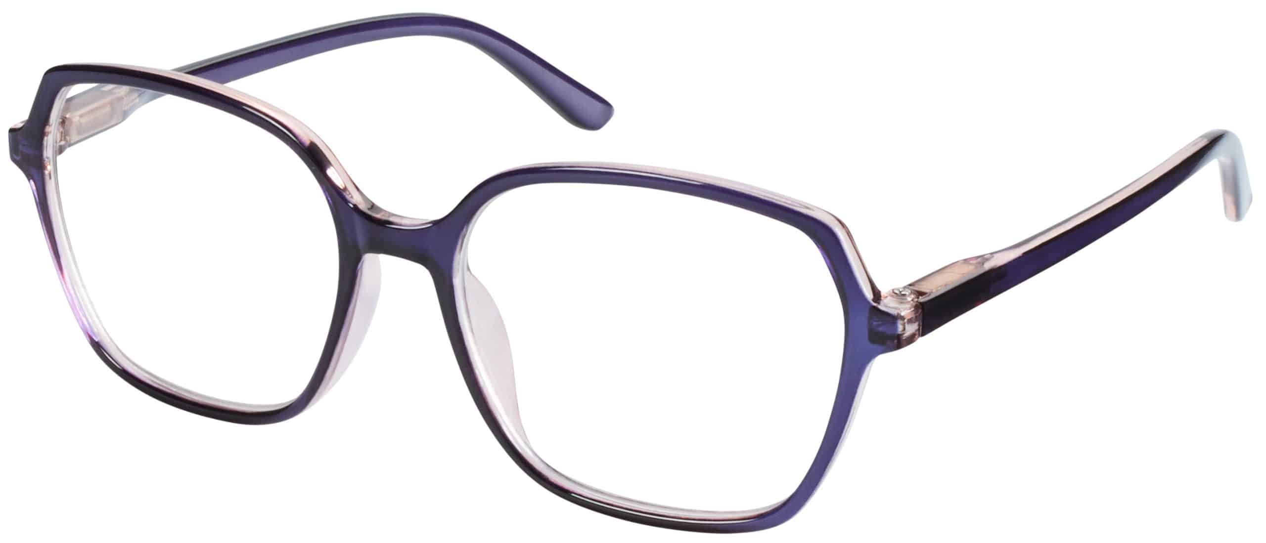 On trend square frame in gloss dark purple with light pink accents inside the frame. Features matching arms. Quality reading lenses. Sprung hinges for extra comfort and durability. Supplied with a Remaldi recycled material soft case for safekeeping (RPET). Part of our new sustainable range, these frames are made from recycled RPCTG plastics. Bottles and food containers are washed, shredded into pellets, heated and reformed into glasses saving them from landfill! We're sure these frames will last you a long time but after use they're also suitable for recycling!